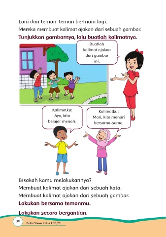 Mereka membuat kalimat ajakan dari sebuah gambar.