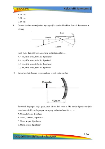 9.    Gambar berikut menunjukkan bayangan jika benda diletakkan 6 cm di depan cermin
