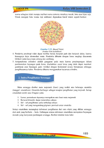 Untuk menguji buta warna (uji ushihara) digunakan huruf tokek seperti berikut: