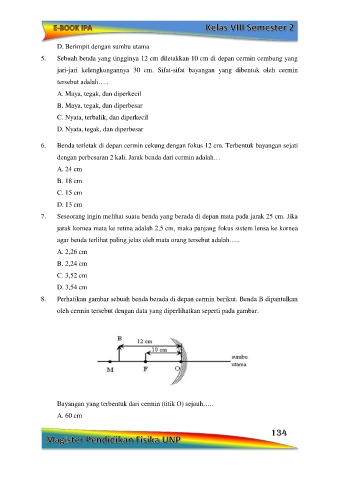 6. Benda terletak di depan cermin cekung dengan fokus 12 cm. Terbentuk bayangan sejati