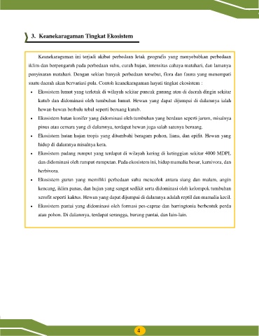 suatu daerah akan bervariasi pula. Contoh keanekaragaman hayati tingkat ekosistem :
