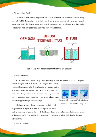 Transportasi pasif dibagi menjadi tiga jenis yaitu sebagai berikut.