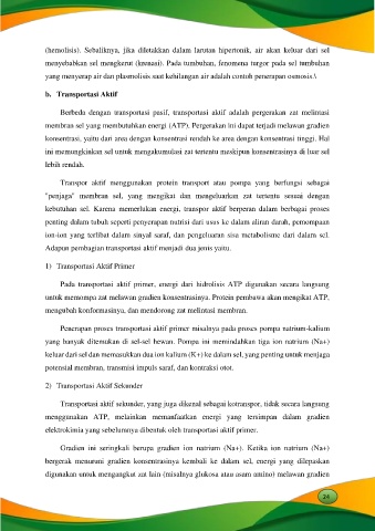 membran sel yang membutuhkan energi (ATP). Pergerakan ini dapat terjadi melawan gradien