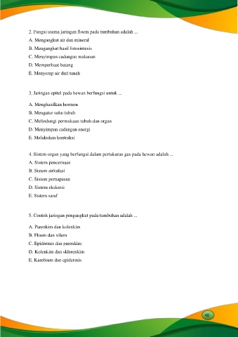 2. Fungsi utama jaringan floem pada tumbuhan adalah ...