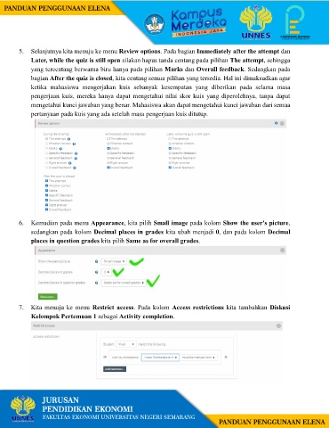 5. Selanjutnya kita menuju ke menu Review options. Pada bagian Immediately after the attempt dan