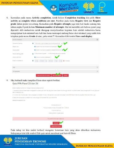 8. Kemudian pada menu Activity completion, untuk kolom Completion tracking kita pilih Show