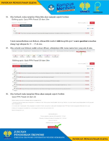 15. Jika seluruh soal diskusi sudah selesai dibuat, selanjutnya klik menu nama kuis yang ada di atas.