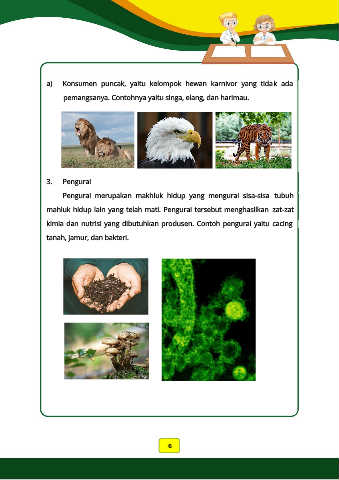 a) Konsumen puncak, yaitu kelompok hewan karnivor yang tidak ada