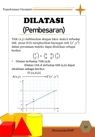 Titik (x,y) didilitasikan dengan fakor skala k terhadap