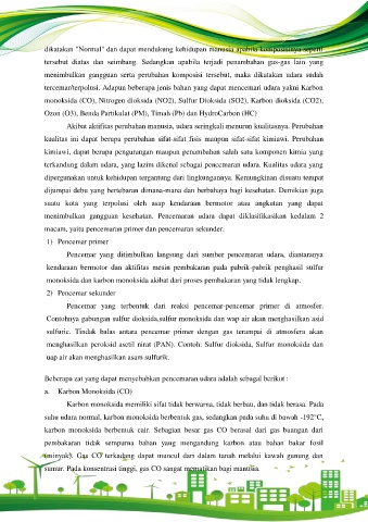 tercemar/terpolusi. Adapun beberapa jenis bahan yang dapat mencemari udara yakni Karbon