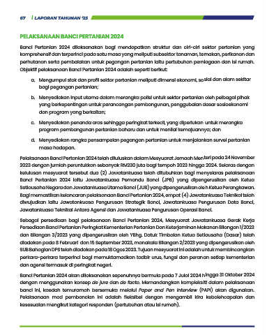 Banci Pertanian 2024 akan dilaksanakan sepenuhnya bermula pada 7 Julai 2024 hingga 31 Oktober 2024