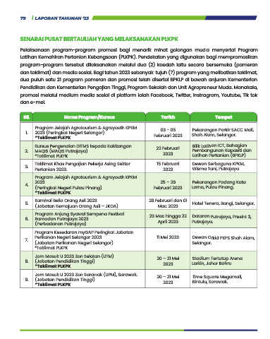 dan taklimat) dan media sosial. Bagi tahun 2023 sebanyak tujuh (7) program yang melibatkan taklimat,