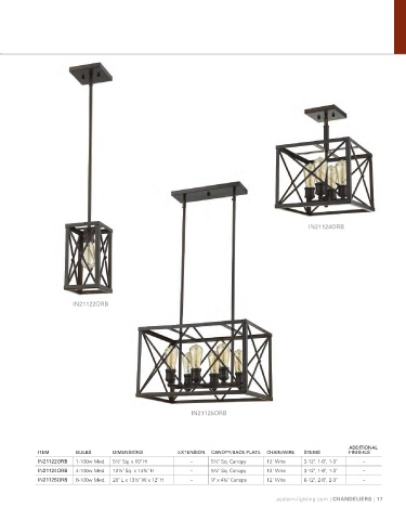 ITEM BULBS DIMENSIONS EXTENSION CANOPY/BACK PLATE CHAIN/WIRE STEMS FINISHES
