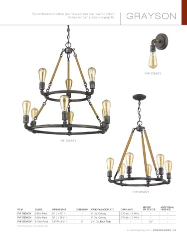 ITEM BULBS DIMENSIONS EXTENSION CANOPY/BACK PLATE CHAIN/WIRE ON CENTER FINISHES