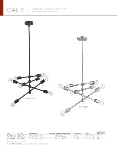 ITEM BULBS DIMENSIONS EXTENSION CANOPY/BACK PLATE CHAIN/WIRE STEMS FINISHES