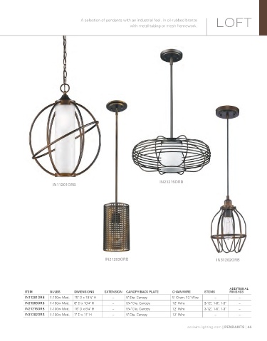 ITEM BULBS DIMENSIONS EXTENSION CANOPY/BACK PLATE CHAIN/WIRE STEMS FINISHES