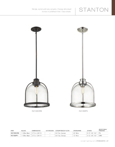 ITEM BULBS DIMENSIONS EXTENSION CANOPY/BACK PLATE CHAIN/WIRE STEMS FINISHES