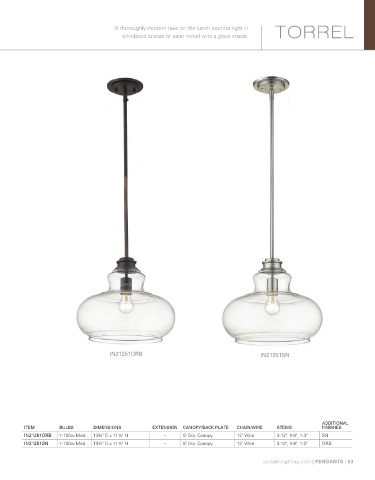ITEM BULBS DIMENSIONS EXTENSION CANOPY/BACK PLATE CHAIN/WIRE STEMS FINISHES