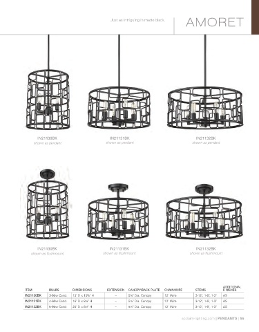 ITEM BULBS DIMENSIONS EXTENSION CANOPY/BACK PLATE CHAIN/WIRE STEMS FINISHES