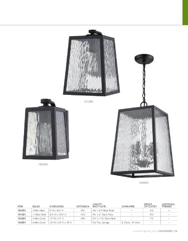 ITEM BULBS DIMENSIONS EXTENSION BACK PLATE CHAIN/WIRE ON CENTER FINISHES