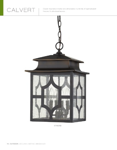 CALVERT Classic inspiration meets new dimensions in a family of sophisticated fixtures. In oil-rubbed bronze. 1776ORB 76 | OUTDOOR | ACCLAIM LIGHTING | 866-845-5451