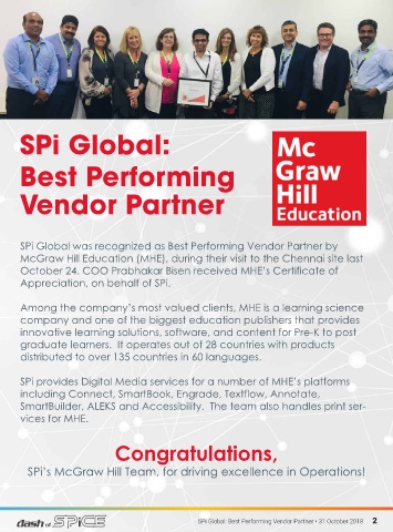 SPi’s McGraw Hill Team, for driving excellence in Operations!