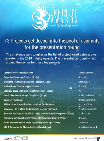The challenge gets tougher as the list of project candidates grows shorter in the 2018 Infinity Awards. The presentation round is just around the corner for these top projects: Infinity Awards • 31 October 2018 8 of