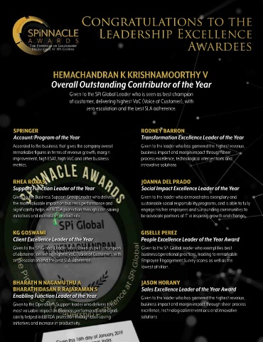Account/Program of the Year Transformation Excellence Leader of the Year