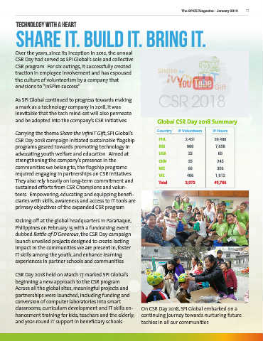 classrooms; curriculum development and IT skills en- On CSR Day 2018, SPi Global embarked on a