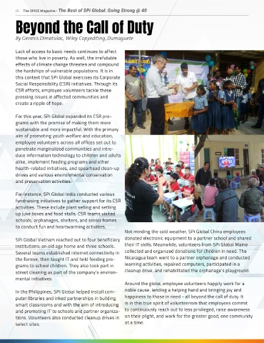 In the Philippines, SPi Global helped install com- noble cause, lending a helping hand and bringing joy and It is a huge relief to know that we can always run to Red Cross for emergencies through SPi Global’s efforts, and