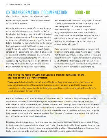 CX Transformation, Documentation GOOD - OK What I got from my friend’s story was that she found it rare to actually be satisfied with how her not-so-ideal