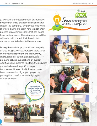 first phase of the Idea Generation Workshop Series. process improvement ideas that can boost