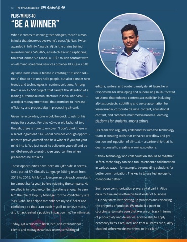 excelled in innovative content solutions enough to earn Such open communication plays a vital part in Ajit’s supportive and unified team, he shares that SPi Global’s