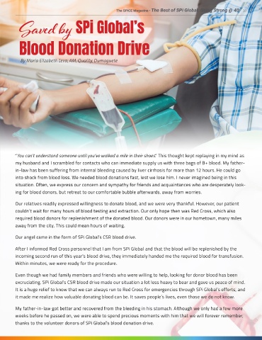 select sites. at a time. thanks to the volunteer donors of SPi Global’s blood donation drive.