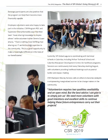 This is not enough to our beneficiaries.” Currently, SPi Global Laguna is coordinating with technical
