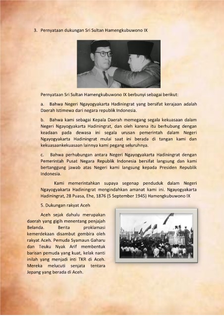 3. Pernyataan dukungan Sri Sultan Hamengkubuwono IX