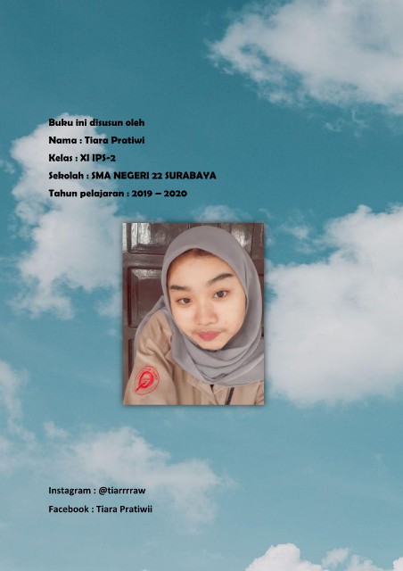 Buku ini disusun oleh Nama : Tiara Pratiwi Kelas : XI IPS-2 Sekolah : SMA NEGERI 22 SURABAYA Tahun pelajaran : 2019 – 2020 Instagram : @tiarrrraw Facebook : Tiara Pratiwii