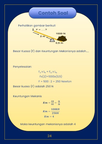 Besar Kuasa (F) dan Keuntungan Mekanisnya adalah.....