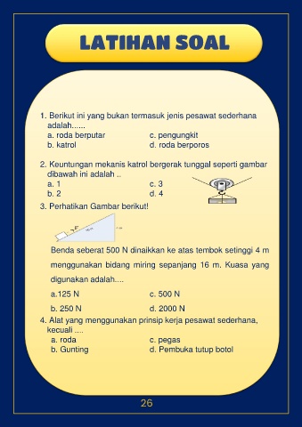 menggunakan bidang miring sepanjang 16 m. Kuasa yang