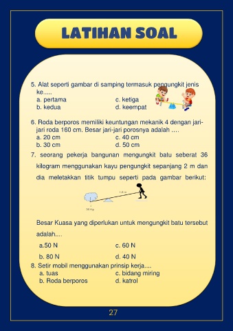 7. seorang pekerja bangunan mengungkit batu seberat 36