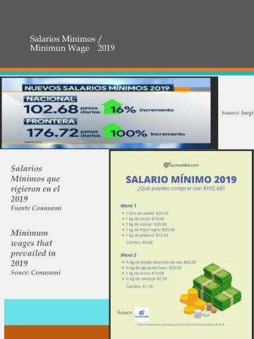 Salarios Minimos / Minimun Wage 2019 Source: Inegi Salarios Mínimos que rigieron en el 2019 Fuente Conasami Minimum wages that prevailed in 2019 Souce: Conasami Souce: