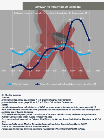 Inflacion Anual Aumento Porcentual Salarial Real vs incrementos D.O.