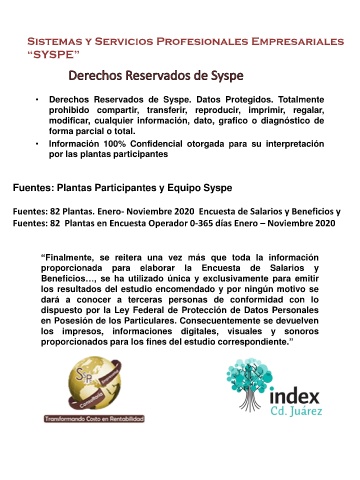 Fuentes: 82 Plantas. Enero- Noviembre 2020 Encuesta de Salarios y Beneficios y