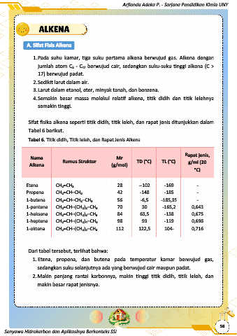 Tabel 6. Titik didih, Titik leleh, dan Rapat Jenis Alkena