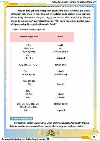 Tabel 3.. Nama dan Struktur Gugus Alkil