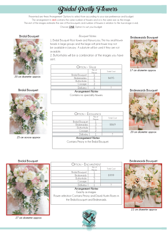 Choose ONE Option to suit your budget. Bouquet Notes: