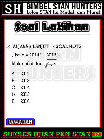 14. ALJABAR LANJUT SOAL HOTS Jika x 2014 3 2012 3 Maka nilai dari x 2 ... 6 A. 2012 B. 2013 C. 2014 D. 2015 E. 2016 17
