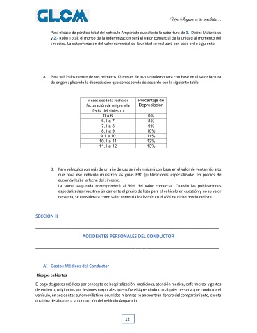 Para el caso de pérdida total del vehículo Amparado que afecte la cobertura de 1.- Daños Materiales