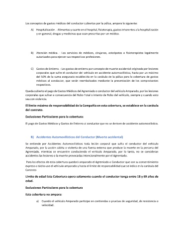 Los conceptos de gastos médicos del conductor cubiertos por la póliza, ampara lo siguiente: