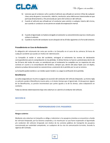 Todas las demás indemnizaciones bajo esta cobertura se cubrirán al conductor del vehículo.